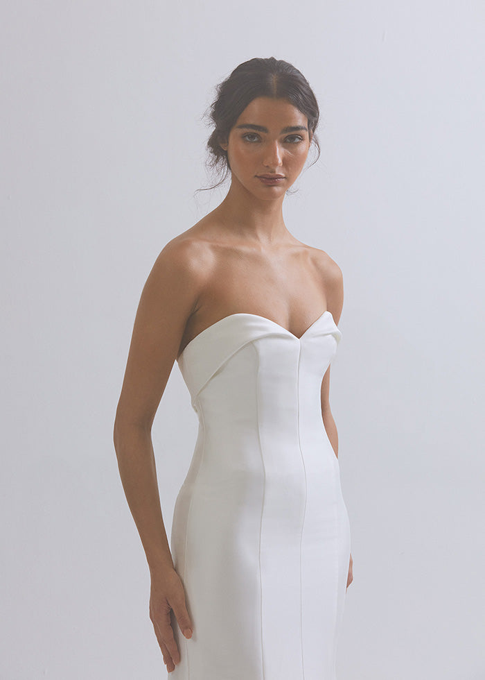 The exclusive JACQUELINE dress is available in custom colours and made-to-measure sizing upon enquiry.